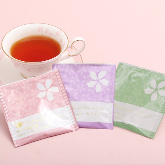 日本の象徴“桜”を鹿児島県産の国産紅茶にブレンド。桜の華やかな香りと金平糖の甘みでほっこり和む紅茶。